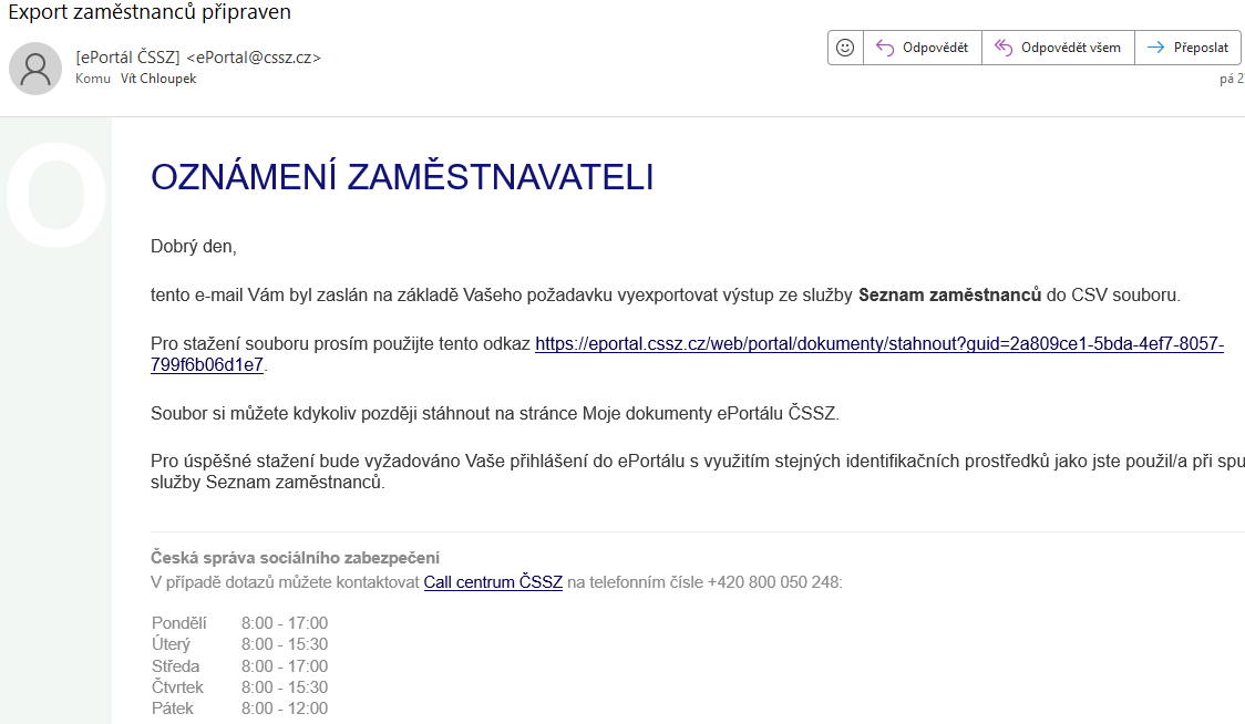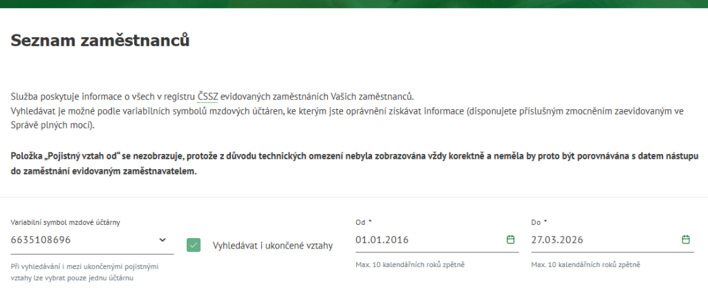 V případě zájmu nabízíme pomoc s importem CSV souboru, který zaměstnavatel získá na portálu ČSSZ.